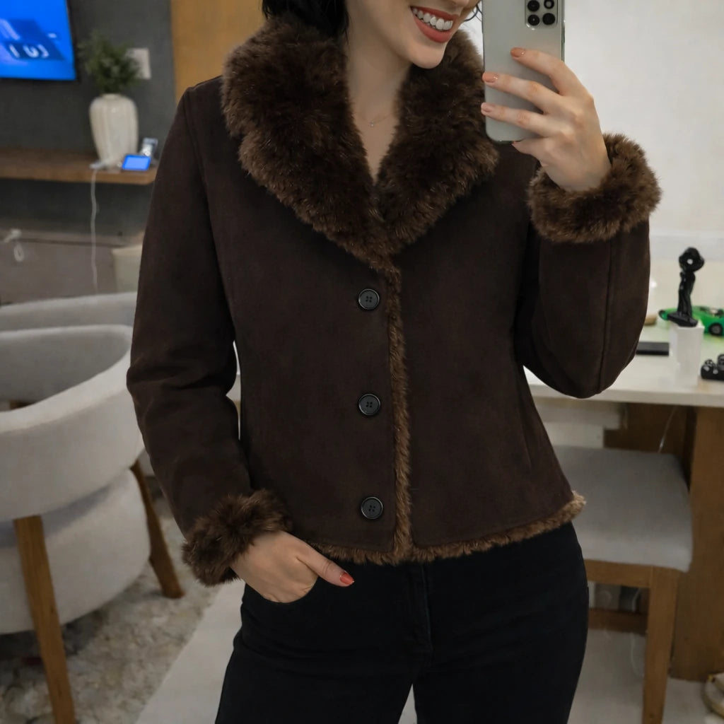 Cette veste réversible 2-en-1 allie élégance et polyvalence. Portez-la côté suédine pour une allure chic et raffinée, ou retournez-la côté fausse fourrure pour un style plus chaleureux et luxueux.